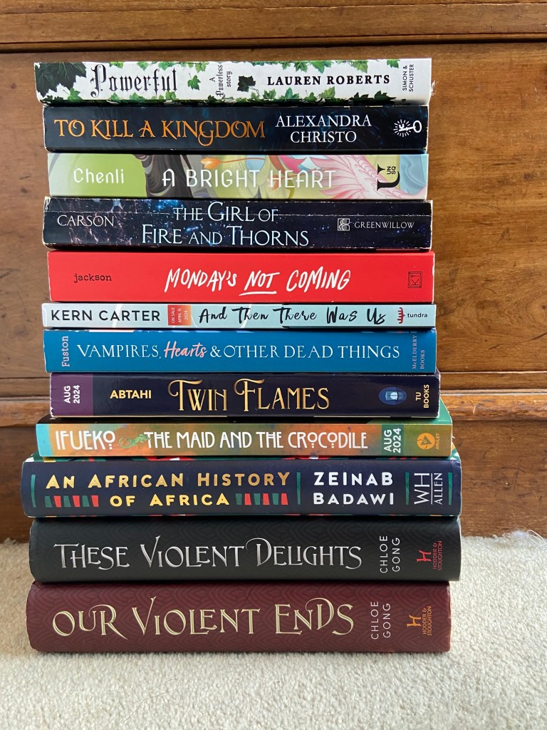 Great looking stack of books this month! A few ARCs mixed in, including The Maid and the Crocodile which I’m over the moon about! I also attended two author talks this month, Zeinab Badawi, and, Lauren Roberts, which were both exceptional. Can’t wait to dive into all of these!